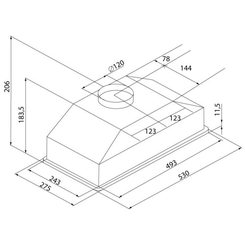 форм-фактор: встраиваемая, ширина: 53 см, глубина: 27.50 см, режимы работы: отвод / циркуляция, место встраивания: в шкаф, максимальная производительность: 630 м³/час, тип управления: механическое, тип освещения: светодиодное, максимальный уровень шума: 51 дБ, ширина встраивания: 49.30 см, диаметр патрубка воздуховода: 120 мм, мощность двигателя: 100 Вт, тип встраивания в шкаф: полновстраиваемая, потребляемая мощность: 100 Вт, дополнительные функции: интенсивный режим, особенности конструкции: антивозвратный клапан