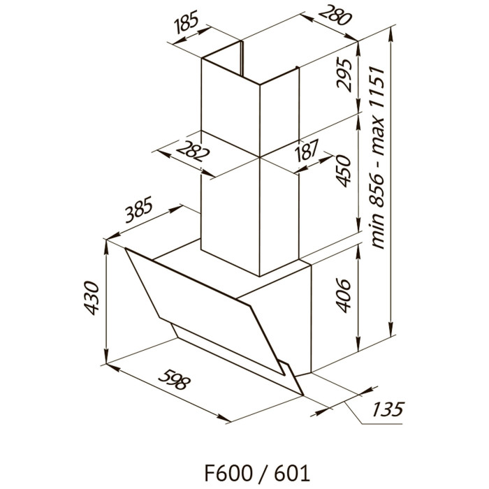 форм-фактор: наклонная, ширина: 59.80 см, глубина: 38.50 см, режимы работы: отвод / циркуляция, максимальная производительность: 600 м³/час, тип установки: пристенная, фильтр: жировой + угольный, тип управления: электронное, тип освещения: светодиодная лампа 1х2 Вт, максимальный уровень шума: 46 дБ, ширина встраивания: 59.80 см, диаметр патрубка воздуховода: 120 мм, мощность двигателя: 190 Вт, потребляемая мощность: 192 Вт, дополнительные функции: таймер, особенности конструкции: антивозвратный клапан