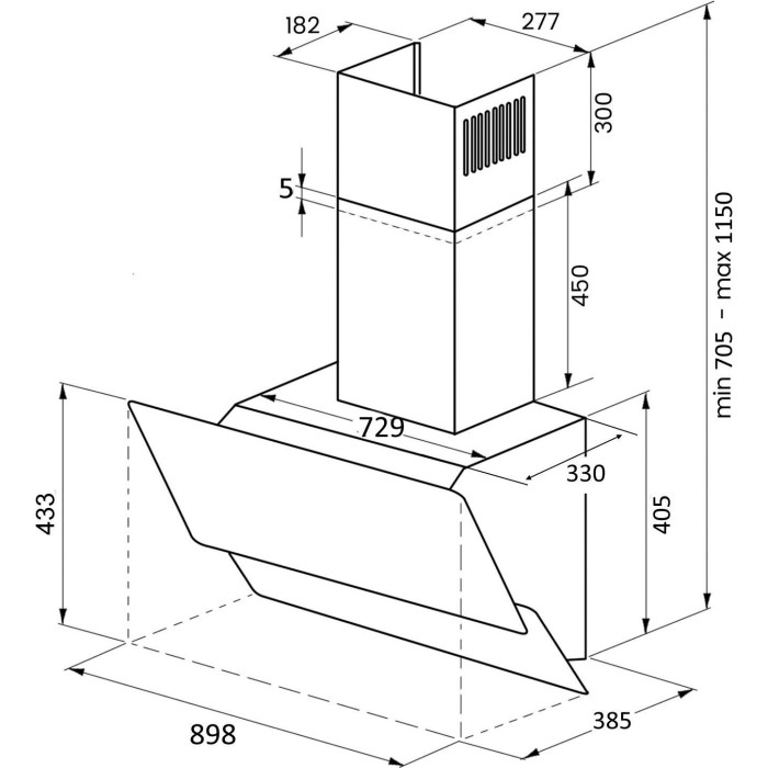 Фасад вытяжки сделан из закаленного стекла. Закаленное стекло прочный и надежный материал стойкий к царапинам и потертостям. Вы с легкостью сможете поддерживать внешний вид вытяжки, для ухода за фасадом достаточно влажной салфетки или обычного моющего средства. Закаленное стекло безопасно, так как при повреждение оно крошиться на мелкие фрагменты, а не на режущие осколки.