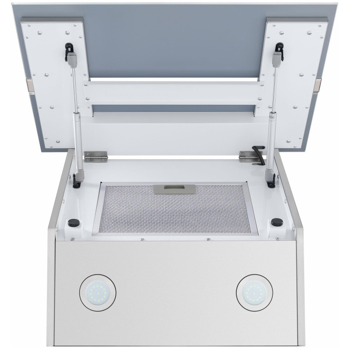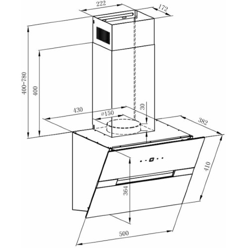 Наклонная кухонная вытяжка шириной 50 см монтируется на стену над варочной панелью. Оптимальное решение для кухни площадью до 30 кв. м. Может использоваться для отвода воздуха из помещения при подключении к системе домовой вентиляции или очищать воздух с помощью сменного угольного фильтра.