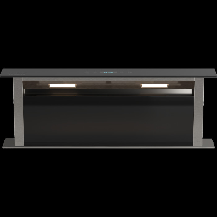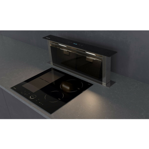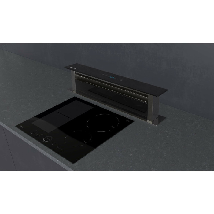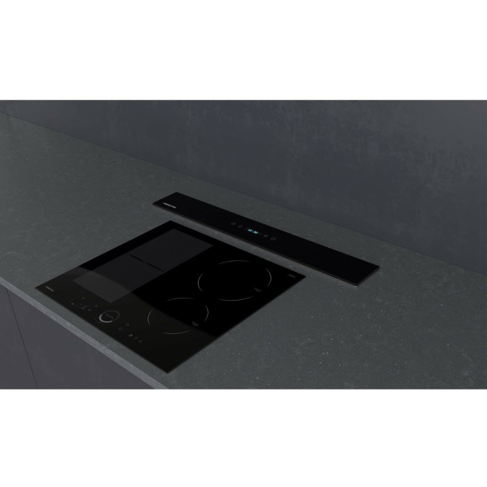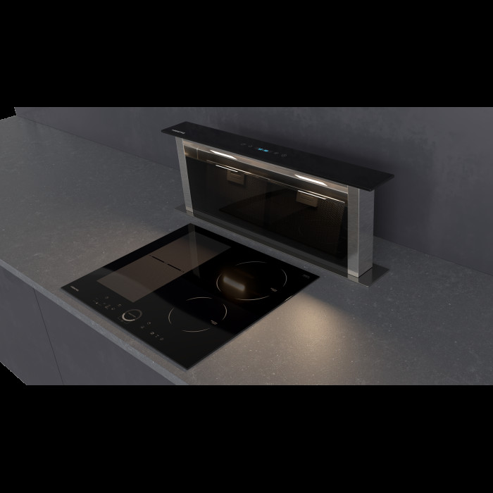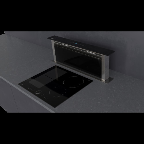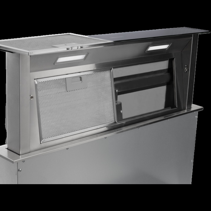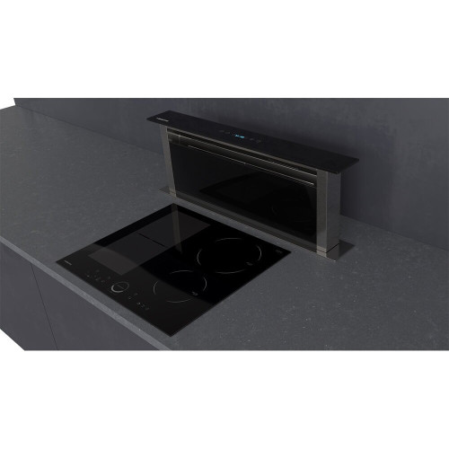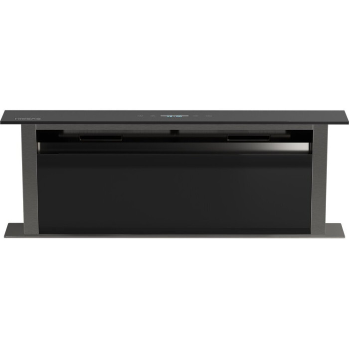 Встраиваемая в столешницу вытяжка HIBERG VTMF 90100 B – это современное инновационное решение для создания комфортных условий на вашей кухне. Вытяжка имеет 9 уровней мощности и работает только в выдвинутом положении, при выключении обратно убирается в стол. В закрытом виде – это элегантная черная стеклянная панель на поверхности стола, которая подходит для больших современных кухонь с островом или кухонного гарнитура без верхних шкафов.