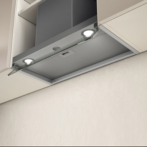 Дизайн. Встраиваемая в подвесной шкаф вытяжка ELICA BOX IN PLUS IXGL/A/90 выполнена из нержавеющей стали. Дизайн дополнен выдвижной панелью из прозрачного стекла. Лаконичный стиль и строгие геометрические формы предоставляют широкие возможности для интеграции в кухонный интерьер любой. Стандартный размер подходит для монтажа над варочной поверхностью шириной до 90 см. Функционал. Прибор может работать в режимах отвода и рециркуляции (монтажный комплект и угольный фильтр для работы в режиме рециркуляции приобретается отдельно). Алюминиевый фильтр допускается мыть в посудомоечной машине при бережном цикле. Преимущества. Двигатель имеет высокую производительность до 1000 куб. м в час. Управление осуществляется удобной утапливаемой вращающейся кнопкой. Экономичное светодиодное освещение обеспечивает качественное освещение рабочей поверхности. Удобное электронное управление тремя основными и одной интенсивной скоростями. Основные характеристики Монтаж: в подвесной шкаф Серия: ELICA DESIGN CENTER Цвет: белое стекло + нержавеющая сталь Высота, см: 31.38 Ширина, см: 89.4 Глубина, см: 31 Для встраивания в шкаф: шириной 90 см комфорт Режимы работы: отвод, рециркуляция Управление: электронное Элементы управления: вращающийся программатор Количество скоростей: 3 Тип освещения: светодиодное Количество ламп: 2 Мощность каждой лампы, Вт: 2.5 Цветовая температура, К: 3500 функции И технологии Особенности конструкции: технология Multi-D Capture комплектация Жироулавливающий фильтр: алюминиевый Фильтр пригоден для мытья в посудомоечной машине: да Угольный фильтр: опционально Тип угольного фильтра: CFC0140343 технические характеристики Производительность, м³/ч: 580 Максимальная производительность, м³/ч: 1000 Минимальный уровень шума, дБ: 49 Максимальный уровень шума, дБ: 70 Класс энергоэффективности: B Потребляемая мощность, Вт: 255 Диаметр воздуховода, мм: 150 дополнительные характеристики Вес в упаковке, кг: 17.2 Высота упаковки, см: 36.3 Ширина упаковки, см: 96 Глубина упаковки, см: 46.2