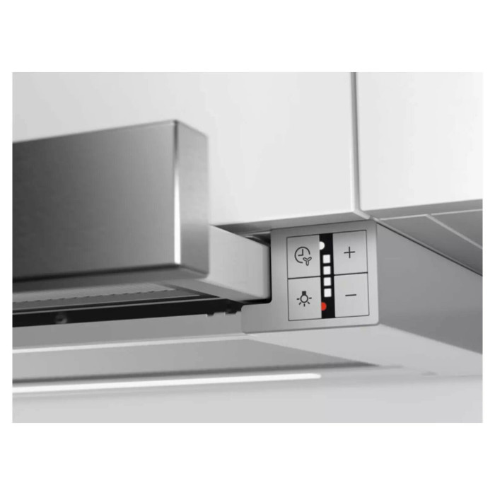 Встраиваемая вытяжка AEG DPE5660M – решение для компактной кухни, выполненной в одном архитектурном стиле. Встроенная вытяжка AEG DPE5660M аккуратно «спрячется» в кухонную мебель над варочной поверхностью, идеально вписываясь в интерьер кухни. Максимальное проветривание и удаление неприятных запахов Сверх мощная вытяжка AEG DPE5660M за 60 минут очищает от неприятных запахов объём воздуха в 660 м3, т. е. помещение в 20 м2 и потолком в 2,7 м, и делает это с шумом в всего лишь в 60 дБ (например, уровень шума езды автомобиля 70 дБ). На заметку, чтобы вытяжка AEG DPE5660M работала максимально мощно, её следует устанавливать на расстоянии 65-85 см над плитой.