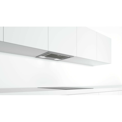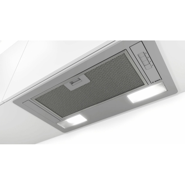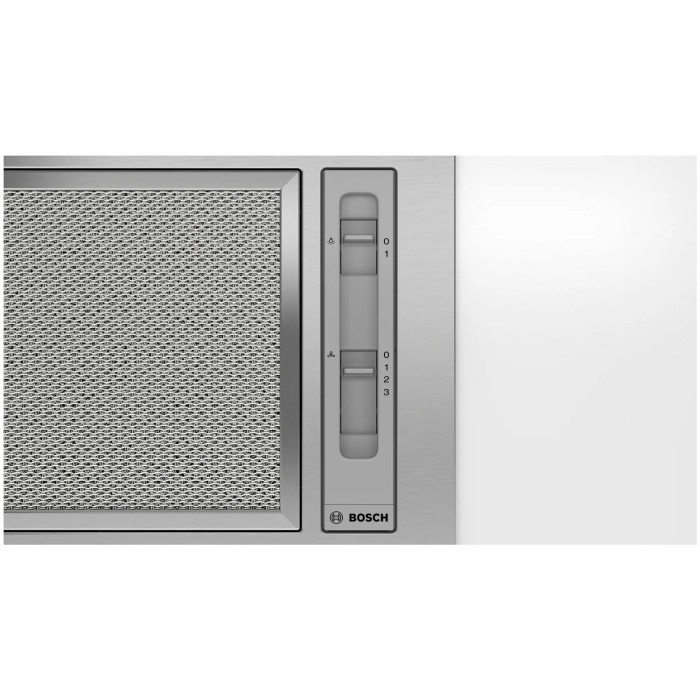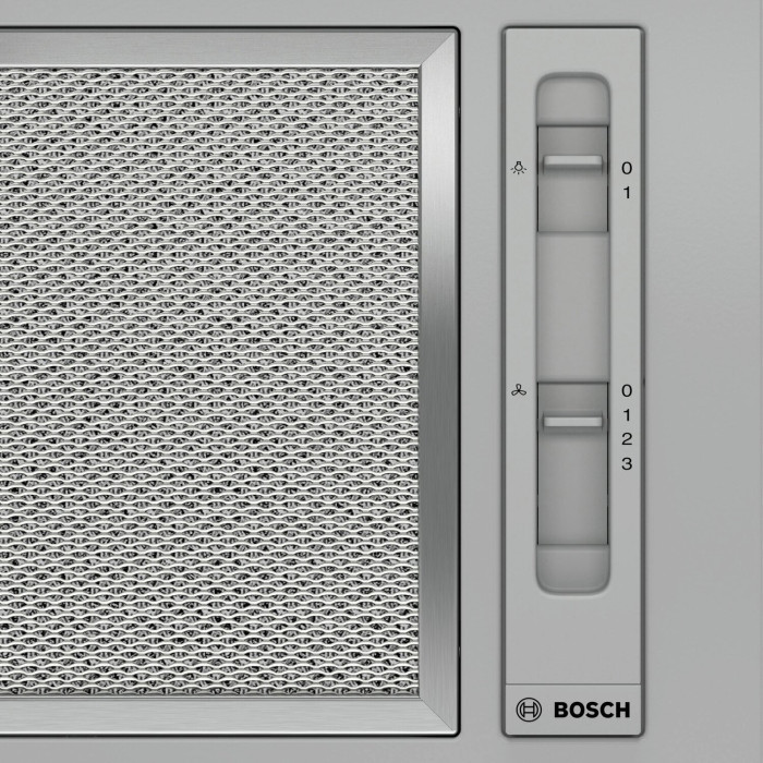 Вытяжка Bosch DLN52AC70 выполнена в цвете «нержавеющая сталь». С помощью кнопок можно установить одну из трех скоростей. Две светодиодные лампы, по 3 Вт каждая, дополнительно осветят рабочее место на кухне. Прибор работает в режиме отвода или рециркуляции воздуха. Для работы в режиме рециркуляции требуется установка специального комплекта. Металлический жироулавливающий фильтр можно мыть в посудомоечной машине.