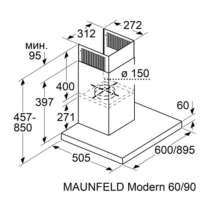 Форм-фактор: Т-образная; Установка: пристенная; Режим работы: отвод / циркуляция воздуха; Максимальная производительность: 1150 м³/час; Количество скоростей: 3; Количество двигателей: 1; Мощность двигателя: 220 Вт; Материал корпуса: металл;
