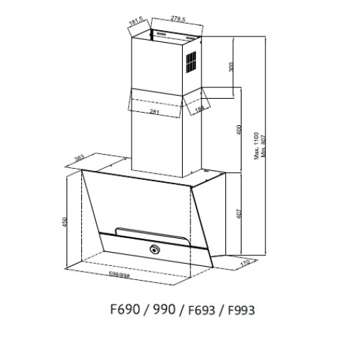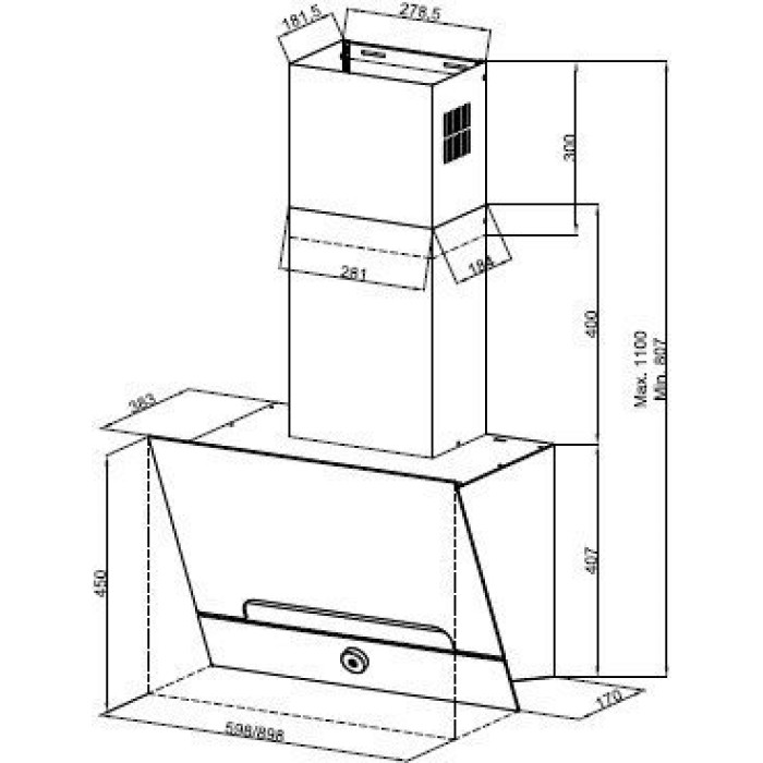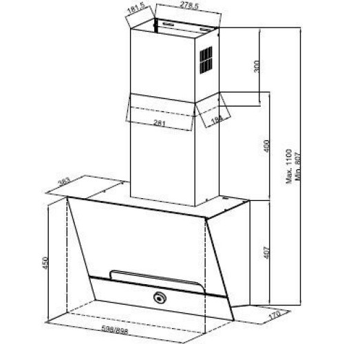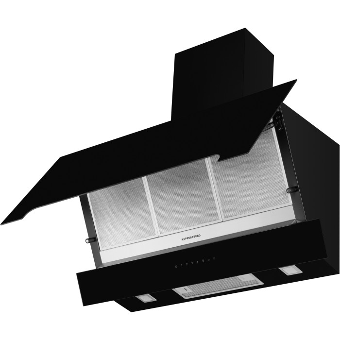 вытяжка наклонная, 90 см, 850 м3/ч, черное стекло