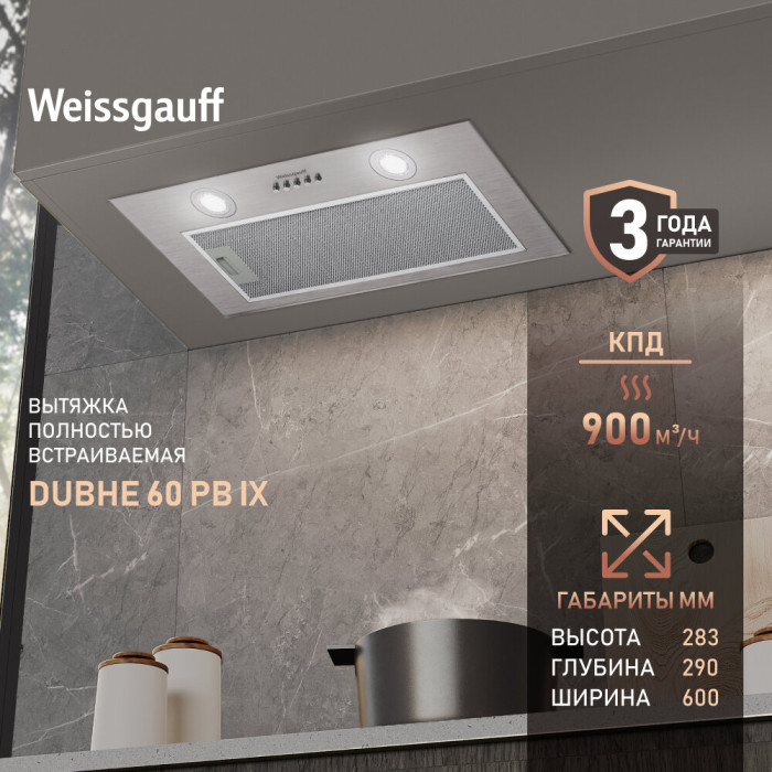 Вытяжка Weissgauff Dubhe 60 PB нержавеющая сталь