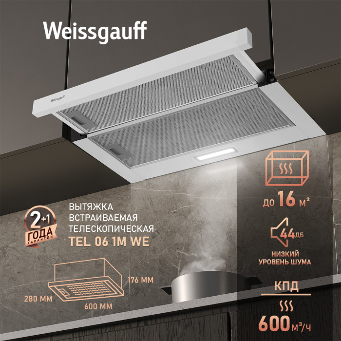 Вытяжка Weissgauff TEL 06 1M WE белый