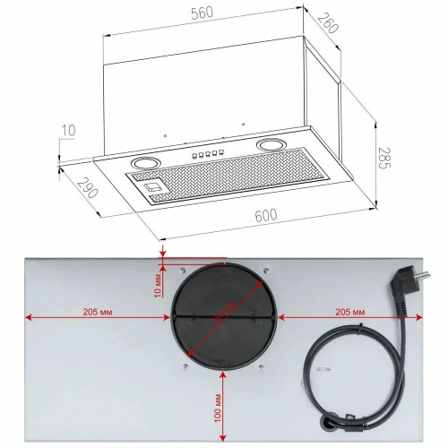 Жировой фильтр, антивозвратный клапан, крепеж. Уважаемые покупатели, переходник/антивозвратный клапан и набор крепежа находится внутри вытяжки, для его извлечения необходимо снять жировой алюминиевый фильтр.