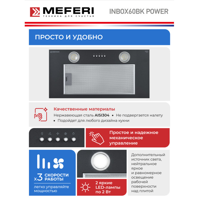 вытяжка; антивозвратный клапан/переходник; жировой фильтр; комплект монтажа; инструкция на русском языке; гарантийный талон на 3 года.