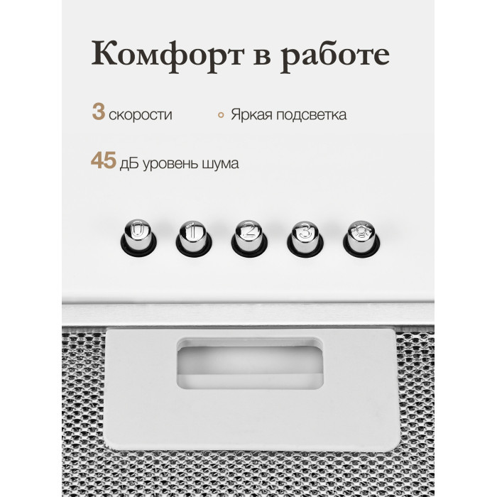 Жироулавливающий фильтр - 1 шт. Угольный фильтр KF-T для работы в режиме рециркуляции (приобретается дополнительно); вытяжка кухонная - 1 шт