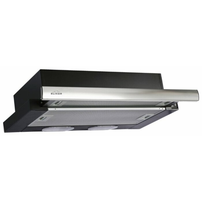 Установка: встраиваемая в шкаф, Потребляемая мощность: 200 Вт, Тип: с выдвижным экраном, Производительность: 400 куб. м/ч, Режимы работы: отвод / циркуляция, Количество скоростей: 2, Управление: механическое, кнопочное, Уровень шума: 55 дБ, Освещение: галогенная лампа, 20 Вт х 2, Ширина встраивания: 50 см, Ширина: 50 см, Глубина: 28 см, Высота: 18 см, Фильтр: жировой, Антивозвратный клапан: есть, Вес: 6 кг, Цвет: корпус: черный