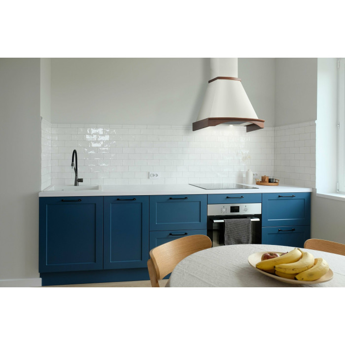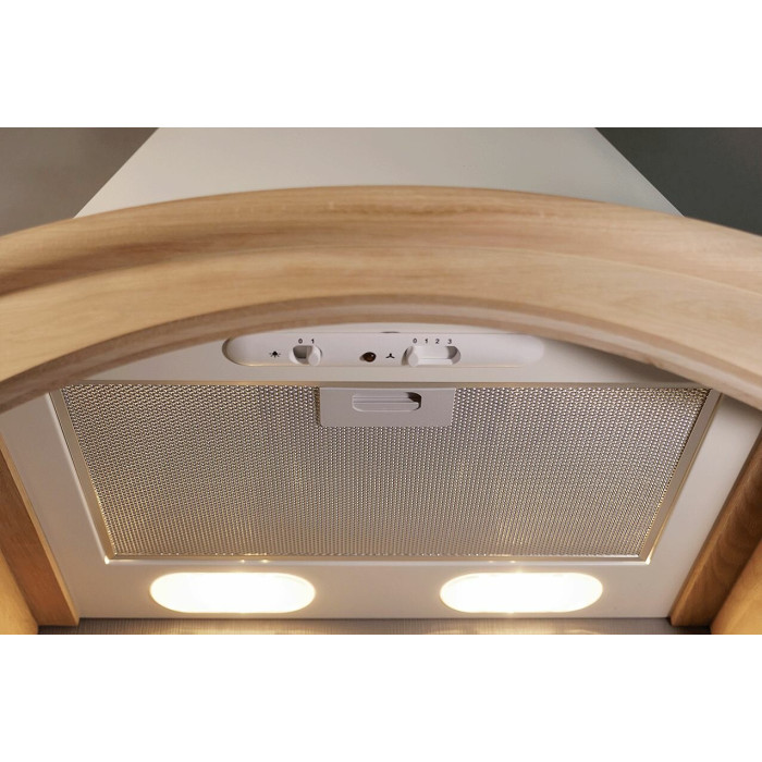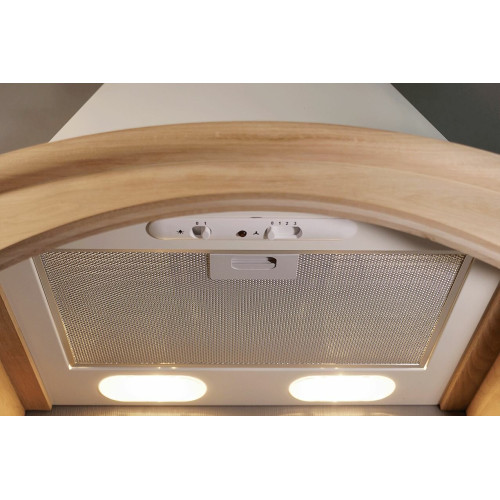 Дизайн купола вытяжки «Ротонда» выполнен по форме полусферы, благодаря чему идеально подходит ко всем кухонным гарнитурам из массива. Многообразие обрамлений позволяет подобрать вытяжку «Ротонда» под любой цвет фасада кухни массива бука или дуба. Вытяжка может работать в режиме рециркуляции, для этого необходимо использовать комплект угольных фильтров Ф-02, который приобретается дополнительно.