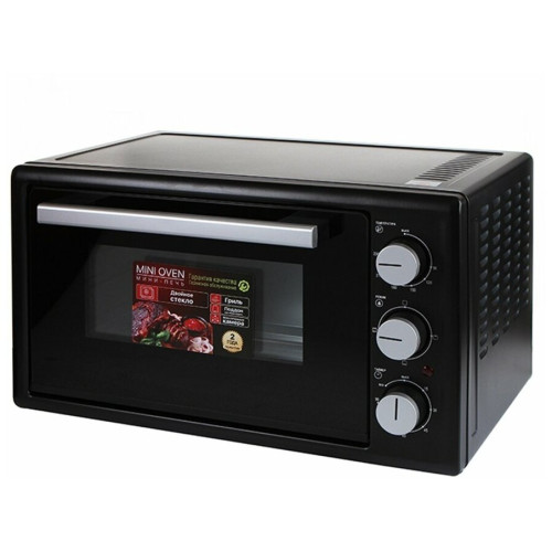 (ШхГхВ)55х32.80х42.70 см.Цвет черный.Дверца духовки: откидная, с двойным остеклением;Количество режимов: 3;Макс. температура нагрева, °С: 230; Мощность (Вт): 2000;Напряжение (В): 230;Объем (л): 40л;Решетка: есть; Стекло духовки: двойное;Таймер: есть, 90 мин.;Термостат: 90-230 *С;