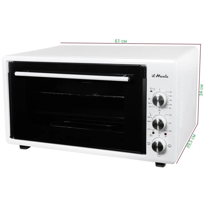 режимы: верхний нагрев, верхний+нижний нагрев, нижний нагрев, объём камеры: 45 л, особенности: внутренняя подсветка, механическое управление, таймер, управление: механическое, комплектация: круглый противень, противень, решётка, максимальная потребляемая мощность: 1600 Вт, ширина: 61 см, глубина: 39 см, высота: 34 см, тип: мини-печь