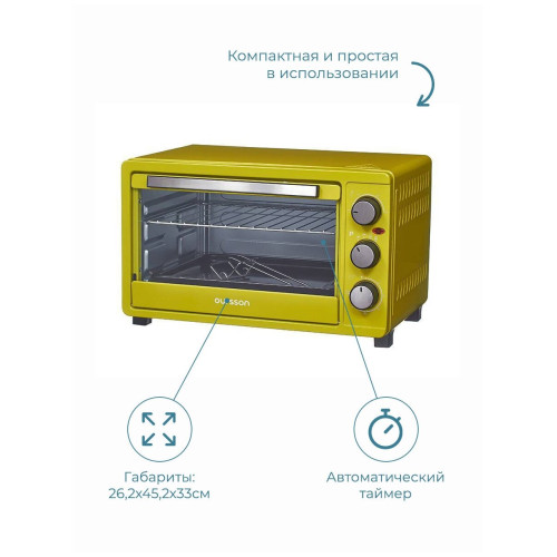 режимы: верхний нагрев, верхний+нижний нагрев, нижний нагрев, объём камеры: 23 л, особенности: внутренняя подсветка, таймер, управление: механическое, комплектация: поддон для сбора крошек, противень, решётка, максимальная потребляемая мощность: 1500 Вт, ширина: 45 см, глубина: 33.50 см, высота: 29 см, тип: мини-печь
