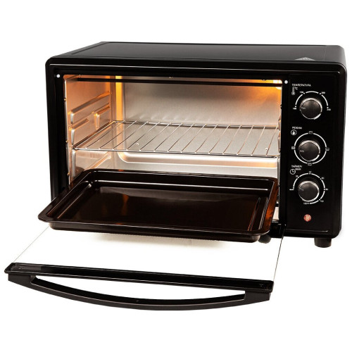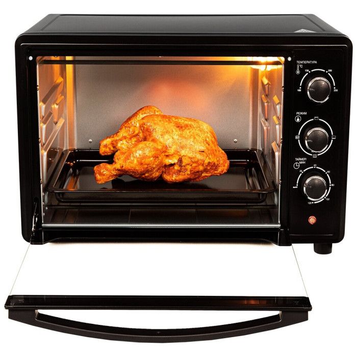 режимы: верхний нагрев, верхний+нижний нагрев, нижний нагрев, объём камеры: 37 л, особенности: внутренняя подсветка, механическое управление, таймер, управление: механическое, комплектация: поддон для сбора крошек, противень, ухват, максимальная потребляемая мощность: 1600 Вт, ширина: 51.80 см, глубина: 38 см, высота: 32.90 см, тип: мини-печь