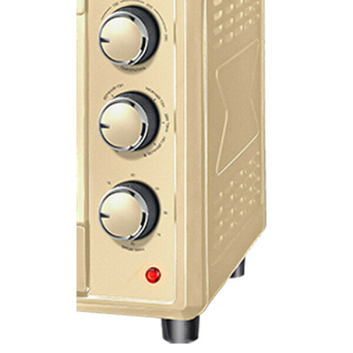 Мини печь Centek CT-1538-50 с мощьностью о 2000 Вт оснащена увеличенным объемом жарочной камеры - 50 л. При помощи хромированных поворотных переключателей вы можете выставлят необходимую температуру приготовления, максимальный покозатель который доходит до 320 °С.