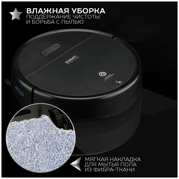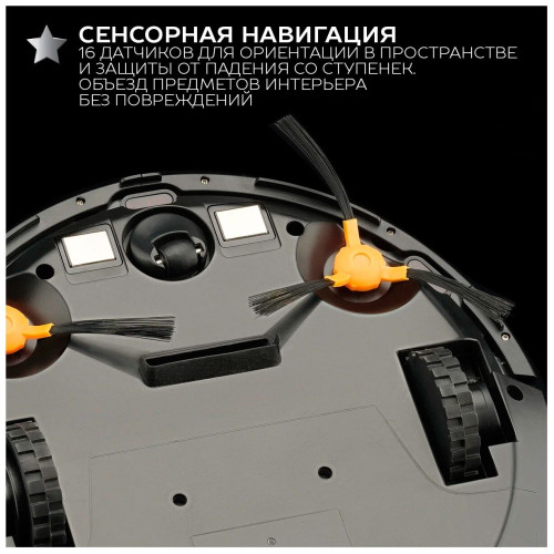 датчик перепада высоты, индикатор заполнения пылесборника, мягкий бампер