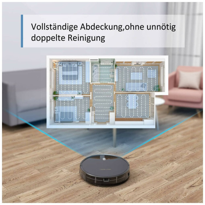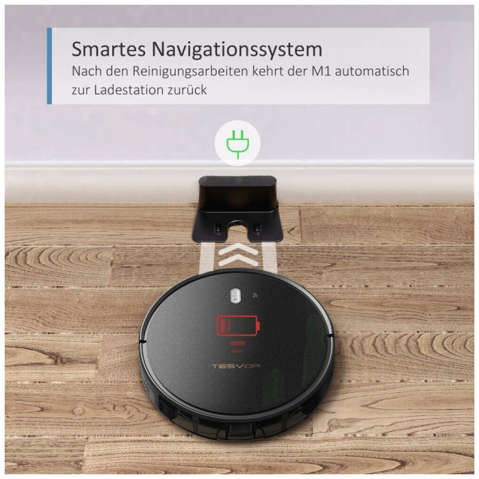 Робот-пылесос Tesvor M1 учитывает все препятствия и составляет точную карту рабочего пространства с помощью новой системы навигации.