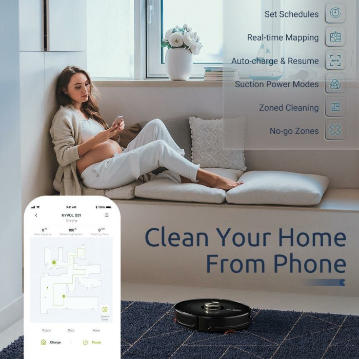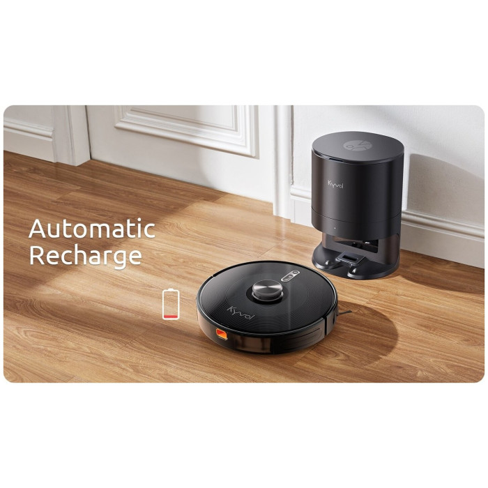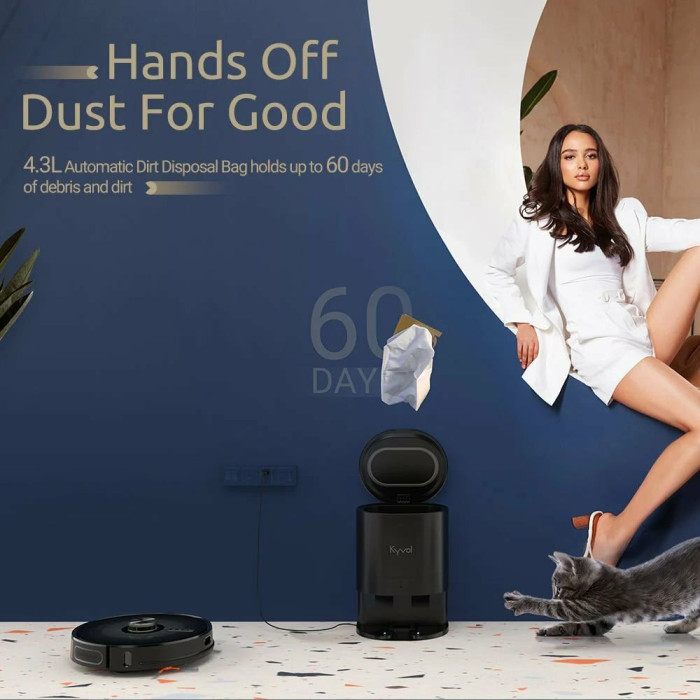 Автоматическое удаление грязи: с зарядной базой Cybovac S31 способен удерживать пыль до 60 дней, избавляя вас от необходимости частого очищения.