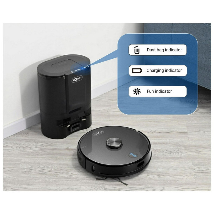 Робот-пылесос XBOT L7 SMART с системой самоочистки мусоросборника предназначен проведения сухой и влажной уборок в пределах одного этажа. Помощник оснащен усовершенствованной навигационной технологией IPNAS 4.0, которая позволила роботизированному помощнику строить карты помещений с высокой точностью. В системе задействован лидар и другие датчики. Из-за увеличенной точности картографирования эффективность уборки увеличивается на 50. Отныне ничто не ускользнет от зоркого глаза L7 SMART. Особенности: База самоочистки пылесборника Зарядная станция с функцией автоматической очистки мусоросборника робота-пылесоса позволяет забыть о необходимости контактировать с мусором на протяжении до двух месяцев. Весь собранный во время уборки сор высасывается из мусоросборника и направляется во вместительный мешок. Для обслуживания системы достаточно заменять мешок по мере его наполняемости на новый. Стенки мусорного мешка не пропускают частицы пыли размером в 10 мкм. Увеличенная мощность всасывания XBOT L7 SMART может похвастаться тем, что обеспечивает невероятно высокое качество сухой уборки разного типа поверхностей. Твердые покрытия или ковры очищаются идеально за счет применения высокой мощности всасывания, составляющей 3000 Па. Теперь у волос, шерсти домашних животных, пыли и остального мусора нет никаких шансов остаться на полу, цепляясь за ворсинки. Коротким путем В мобильном приложении имеется возможность направить робота на зарядную базу, прервав уборку, когда вы решаете очистить пылесборник или прекратить очистку. При нажатии соответствующей кнопки гаджет определяет кратчайший путь до док-станции, используя составленную карту. Уборка по расписанию Не надо ждать времени, когда удобнее всего будет запустить робота. Составьте для своего домашнего помощника индивидуальный график уборки, чтобы XBOT поддерживал чистоту в доме по расписанию. Уборку можно программировать не только для всего этажа, но и для отдельных комнат или выделенных зон. Настройте время старта на период, когда никого нет дома и наслаждайтесь чистотой по возвращении домой. Сухая и влажная уборка XBOT L7 SMART рассчитан на осуществление сухой и влажной уборок, поскольку оснащен пылесборником на 300 мл и резервуаром для моющего средства или воды на 280 мл. Одновременное проведение двух операций экономит время в два раза. Не дом создан для уборки, а уборка нужна для поддержания чистоты в доме. Увеличение мощности на коврах Робот-пылесос оснащен датчиком Vboost, который превращает процесс уборки в интеллектуальный процесс. Он моментально определяет наличие ковра при попадании на ворсистую поверхность, в результате чего мощность всасывания увеличивается до максимального значения. Как итого, после робота остается лишь чистая поверхность. Интеграция с голосовыми помощниками Роботизированный уборщик обеспечивает поддержку с самыми популярными голосовыми помощниками. Роботом-пылесосом можно управлять с помощью голосовых помощников «Яндекс Алиса» или «Google Ассистент». Подключите голосового помощника следуя инструкции и управляйте роботом как при помощи колонки, так и через смартфон.