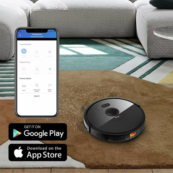 управление через мобильное приложение WeBack, встроенное видеонаблюдение, регулировка силы всасывания, время работы при влажной уборке 100-180 мин