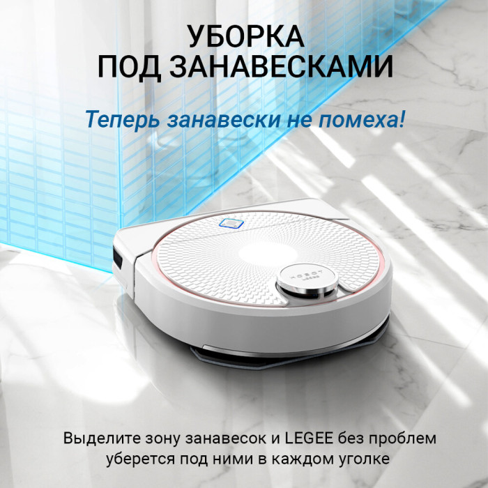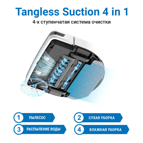 Благодаря новой функции Tangless Suction 4 в 1 LEGEE выполняет одновременную 4-х ступенчатую очистку: пылесосит пол с помощью переднего сопла, подметает с помощью турбощетки для тщательной уборки, распыляет воду и моет пол салфеткой с прижимным усилием 600 г!