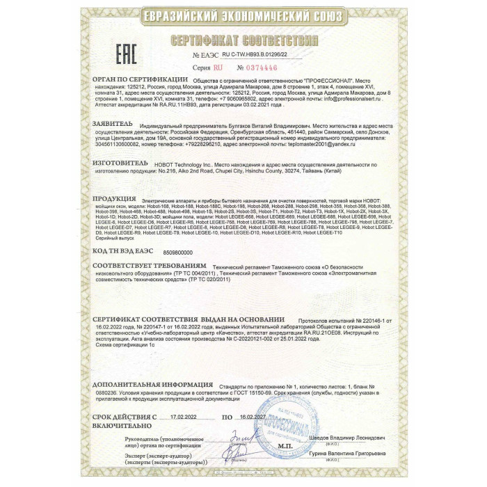 1 г., На роботы, приобретаемые в нашем магазине с 2022 года распространяется гарантия производителя 36 месяцев с даты покупки. Гарантийный ремонт осуществляется в одном из 40 авторизированных сервисных центров Hobot в России и странах СНГ.