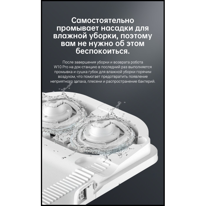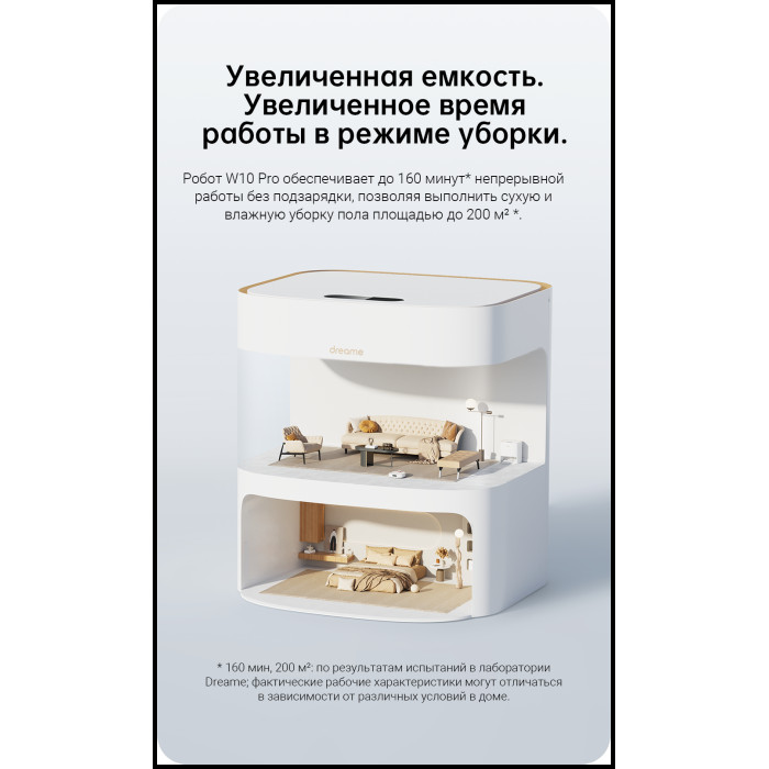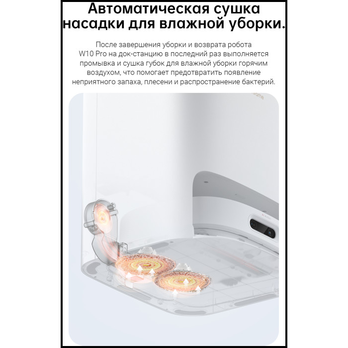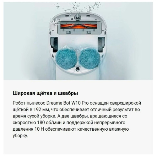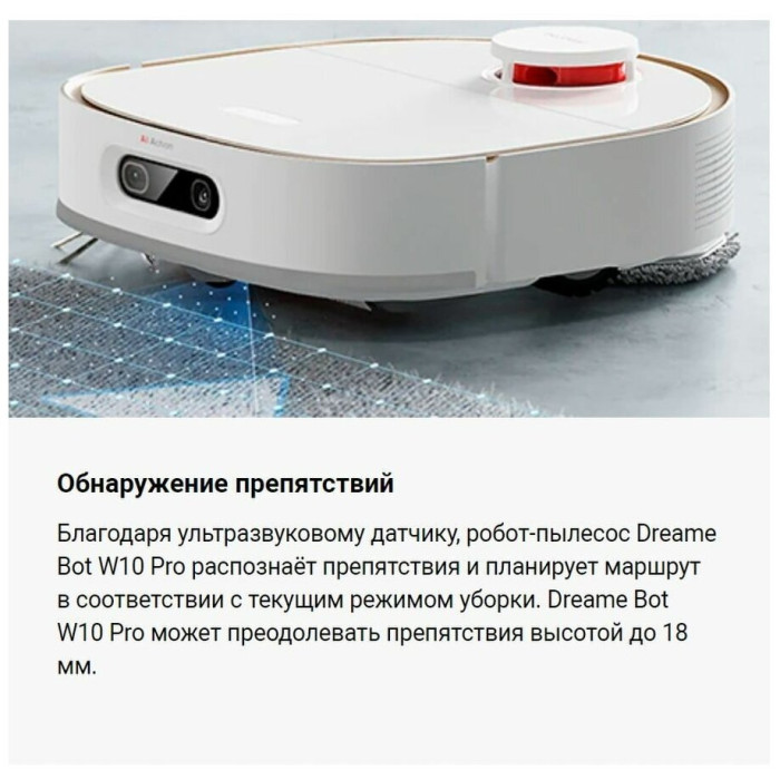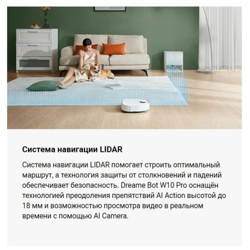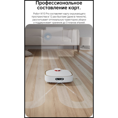 Робот-пылесос Xiaomi Dreame Bot W10 Pro оснастили лазерным дальномером, боковым TOF-сенсором и множеством инфракрасных датчиков. Он строит карту помещения и обновляет ее перед каждой уборкой. По словам производителя, построение карты осуществляется в 12 раз быстрее, чем у предыдущих девайсов от «Дрими», благодаря обновленной системе SLAM. Робот-пылесос единовременно сохраняет до 3 карт. Dreame Bot W10 Pro оснастили лазерной системой навигации. Во время автоматического режима работы робот-пылесос проходит помещение по периметру, а затем движется «змейкой». Кроме того, Dreame Bot W10 Pro имеет дополнительные программы: «Локальная уборка» — обработка небольшого участка вокруг или в точке, указанной на карте; «Периметр» — очистка вдоль стен; «Двойная уборка» — пылесос дважды проходит помещение или отдельную комнату; «Турборежим» — всасывание мусора на увеличенной мощности.