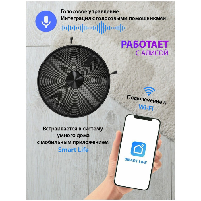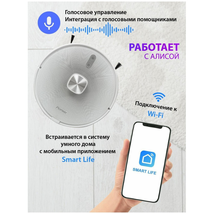 Робот пылесос Pioneer VC720R white интегрируется в систему умный дом с Алисой с помощью приложения Smart life. Установив данное приложение на свой смартфон и подключив к нему Pioneer VC720R, Вы сможете управлять процессом уборки с помощью голосового помощника Алисы. Робот пылесос Pioneer встроенный в систему умный дом от яндекс сделают уборку увлекательным занятием. Данная модель оснащена японским двигателем Nidec.