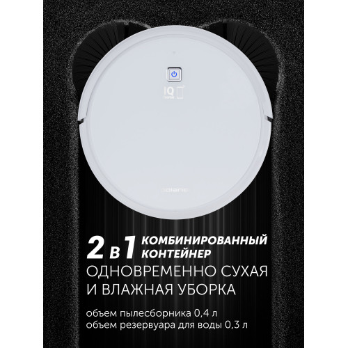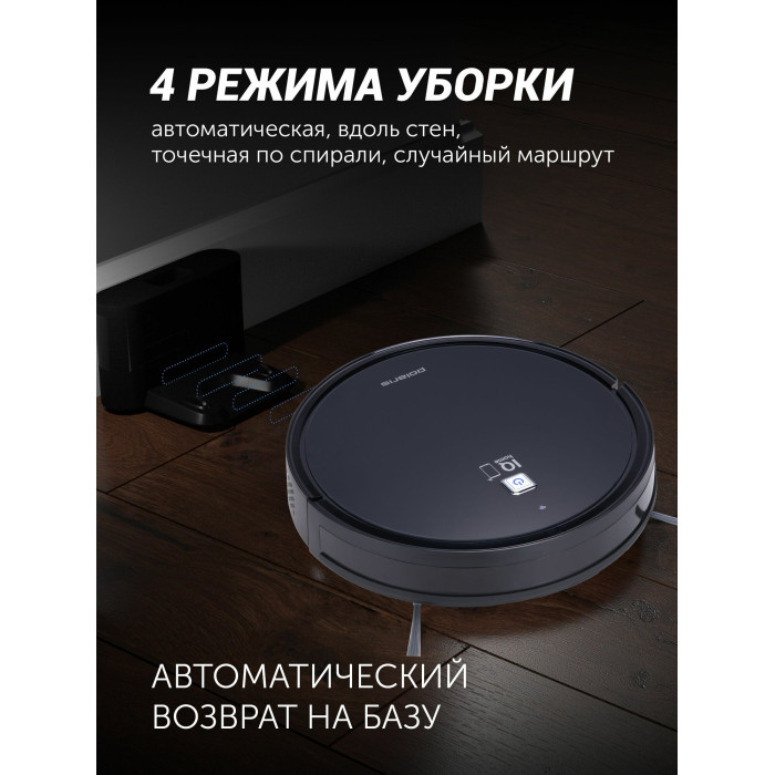 Wi-Fi управление: - Управление из любой точки мира через приложение в телефоне; - Неограниченное количество пользователей; - Без дополнительного оборудования. возможности: - Построение маршрута уборки; - Расписание уборки; - Сухая и влажная автоматическая уборка; - Время работы: до 150 минут. безопасность: - Возможность установить права администратора; - Многоуровневая защита данных; - Функция «Защита от детей». Построение маршрута Gyroinside. Фильтр HEPA 12. Расписание уборки: часы, дни. Электрощетка. Боковые щетки для эффективной уборки. Инфракрасные датчики для ориентации в помещении.