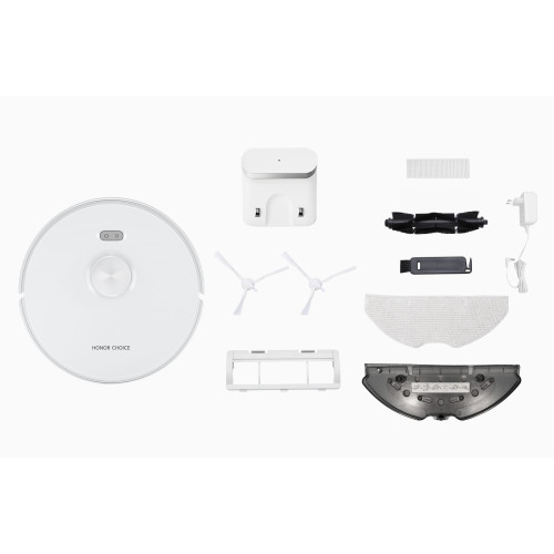 Характеристики Робот-пылесос Honor Choice Robot Cleaner R2 белый Заводские данные Гарантия от производителя 12 мес. Страна-производитель Китай Общие параметры Тип робот-пылесос Модель Honor Choice Robot Cleaner R2 Основной цвет белый Основные характеристики Тип уборки сухая/влажная Емкость пылесборника 0.4 л Мощность всасывания 2700 Па Фильтр тонкой очистки есть Типы датчиков и сенсоров датчики определения препятствий, лазерные датчики, лидар Особенности Ключевые особенности автоматическое увеличение мощности на ковре, зонирование помещения, непрерывное сканирование препятствий, объезд ковров в режиме влажной уборки Количество режимов работы 6 Наличие боковых щеток есть Емкость бака для воды/моющего средства 300 мл Управление со смартфона Wi-Fi Приложение для управления Honor Choice Турбощетка в комплекте есть Уборка по расписанию есть Построение карты помещения есть Тип навигации LDS лазер Уровень шума 65 дБ Другие функции и возможности 3-х ступенчатая система уборки, поддержка голосового интерфейса на нескольких языках Высота преодоления порога 2 см Питание Тип питания аккумулятор Напряжение питания 24 В Тип автономных элементов питания Li-Ion Емкость автономных элементов питания 3200 мА*ч Зарядное устройство док-станция Продолжительность автономной работы 120 мин Площадь уборки на полном заряде элементов питания 200 м² Время зарядки 360 мин Дополнительная информация Комплектация адаптер питания, док-станция, документация, моющий модуль, чистящая щетка Габариты и вес Длина 342 мм Ширина 342 мм Высота 94.5 мм Вес 2.6 кг Робот-пылесос Honor Choice Robot Cleaner R2 – интеллектуальное устройство для сухой и влажной уборки дома. Благодаря встроенному лидару он строит карту помещения, определяет препятствия и с высокой точностью преодолевает их. Мощность всасывания 2700 Па позволяет эффективно справляться с уборкой пыли, мусора, волос, шерсти. Робот-пылесос подключается к сети по Wi-Fi и предусматривает управление с помощью приложения Honor Choice на мобильном устройстве. Аккумулятор 3200 мА*ч гарантирует до 120 минут автономной работы. При необходимости зарядки и по завершению уборки Honor Choice Robot Cleaner R2 располагается на док-станции для восстановления ресурса.