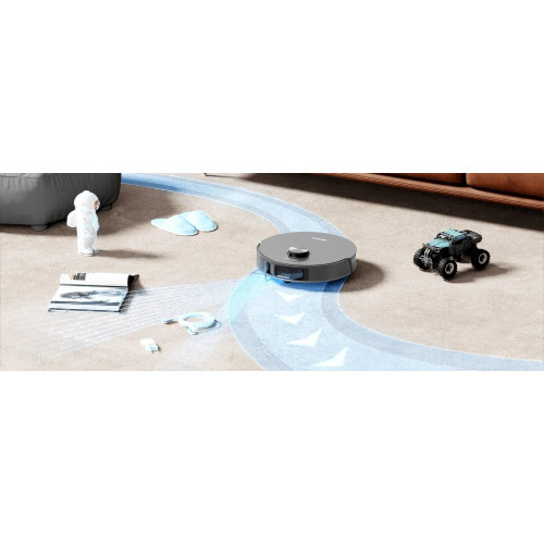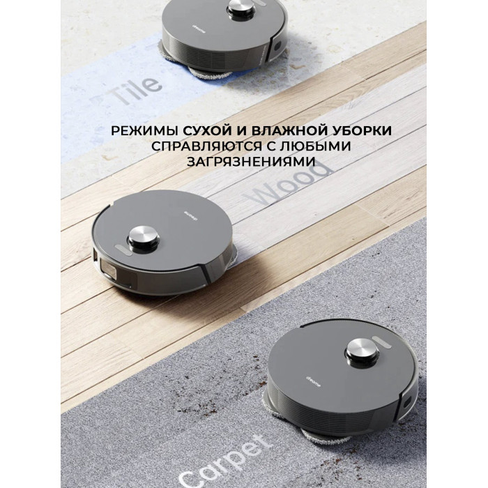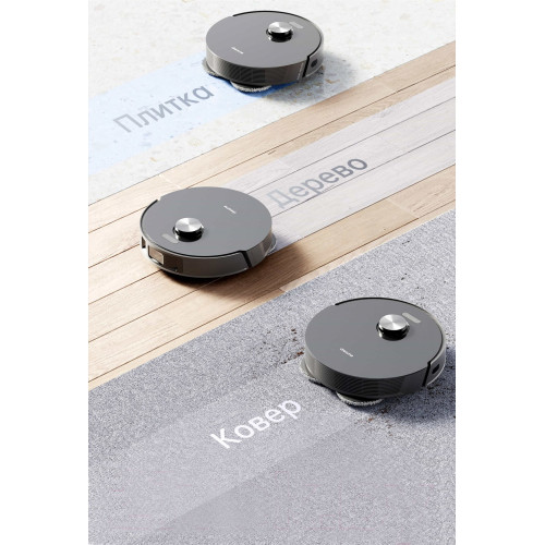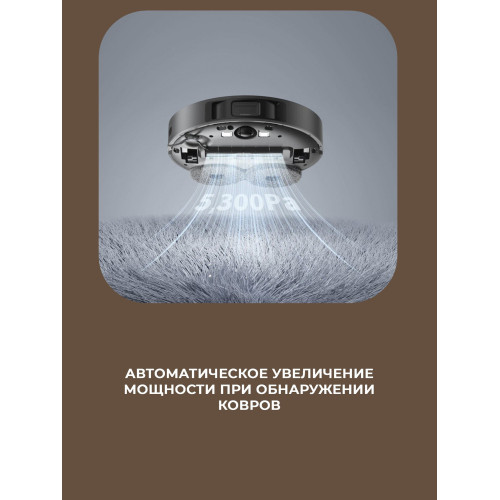 Дистанционное управление через приложение; Голосовые оповещения; Автоматический поиск зарядного устройства; Отключение при перегреве; Составление плана помещения; Прорезиненные колеса; Световая индикация о застревании; Индикатор степени зарядки; Индикатор включения; Индикатор режима работы; Уборка вдоль стены; Датчики препятствий