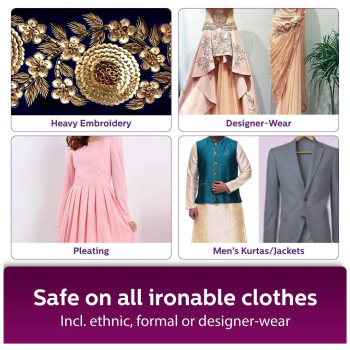 подходит для всех тканей, допускающих глажение; индикатор отпаривания; складной; пластиковая подошва;