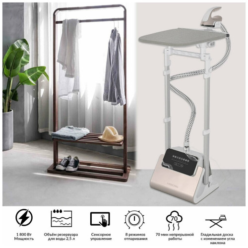 съемный резервуар для воды, телескопическая стойка, 8 режимов отпаривание, напольный, отпариватель