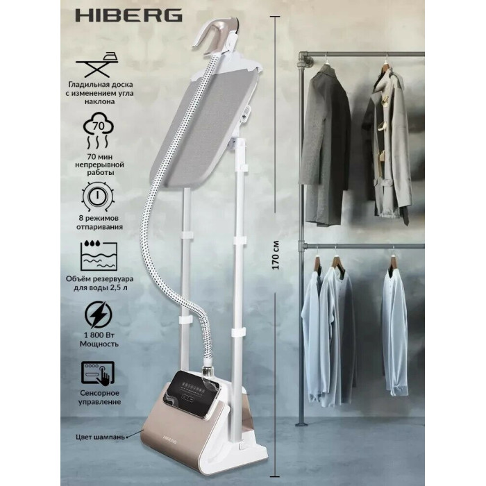Многофункциональный, стильный и удобный отпариватель HIBERG GS – 5000 H обеспечит профессиональный уход за вашим гардеробом, текстилем и мебелью! Отпариватель, мощностью 1800 Вт, легко разгладит самые труднодоступные и неудобные для глажки места. Благодаря 8 режимам отпаривания модель справится с любым видом тканей: нейлон, тюль, шёлк, полиэстер, хлопок, шерсть, деним и лен. Сенсорное управление позволит выбрать одну из предусмотренных программ, а на электронной панели будет подсвечиваться выбранная индикация. Металлический утюжок с антипригарным покрытием подает постоянный пар со скоростью 32 г/мин. Под действием пара, ткани не сжимаются и не растягиваются, а приобретают презентабельный внешний вид. Благодаря тому, что температура пара достигает 100 градусов, отпариватель избавит вещи от вредных бактерий и неприятных запахов. Кроме того, паром можно обрабатывать постельные принадлежности (матрас, подушки, одеяла), мягкую мебель и многое другое. Пар проникает на глубину до 15 см, тем самым уничтожает клещей домашней пыли, которые являются главной причиной для аллергии. Главное преимущество модели – гладильная доска с изменением угла наклона. Ее можно установить в любом удобном положении: вертикально, горизонтально, под углом 30 или 60 градусов. Вертикальный отпариватель GS – 5000 H способен непрерывно работать до 70 минут. Резервуар для воды объемом 2,5 л выполнен из прозрачного пластика и расположен в нижней части устройства. Длина парового шланга 1,35 м. Особенности и преимущества: - цвет: шампань; - гладильная доска в комплекте; - потребляемая мощность 1800 Вт; - электронное управление (сенсор); - 8 режимов отпаривания; - 70 минут непрерывной работы; - объем резервуара для воды 2,5 л. Отпариватель премиум - качества HIBERG GS – 5000 H – отличное решение для тех, кто хочет надолго сохранить идеальный вид своей одежды!