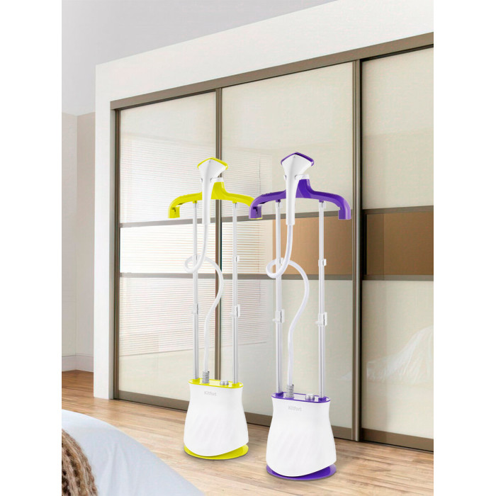 Комплектация 1. Отпариватель с паровым шлангом и утюжком — 1 шт. 2. Резервуар для воды — 1 шт. 3. Телескопическая стойка — 2 шт. 4. Вешалка с держателем утюжка — 1 шт. 5. Ворсовая щетка — 1 шт. 6. Прищепка для одежды — 2 шт. 7. Защитная варежка — 1 шт. 8. Руководство по эксплуатации — 1 шт. 9. Коллекционный магнит — 1 шт.* *опционально