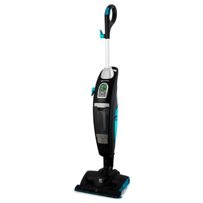 вертикальный пылесос с функцией паровой швабры; всасывает пыль и мелкий мусор, а затем очищает поверхность при помощи горячего пара; мощность подачи пара 1100 Вт; комплектация: держатель для тряпки, тряпка для пола