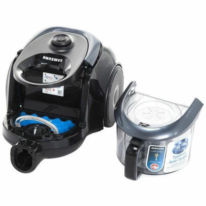 турбина Anti-Tangle - предотвращает наматывание волос, шерсти и пыли на фильтр; поворотная ручка Easy Grip; фильтр перед мотором; материал трубки - сталь; радиус зоны уборки 9 м