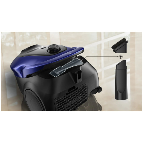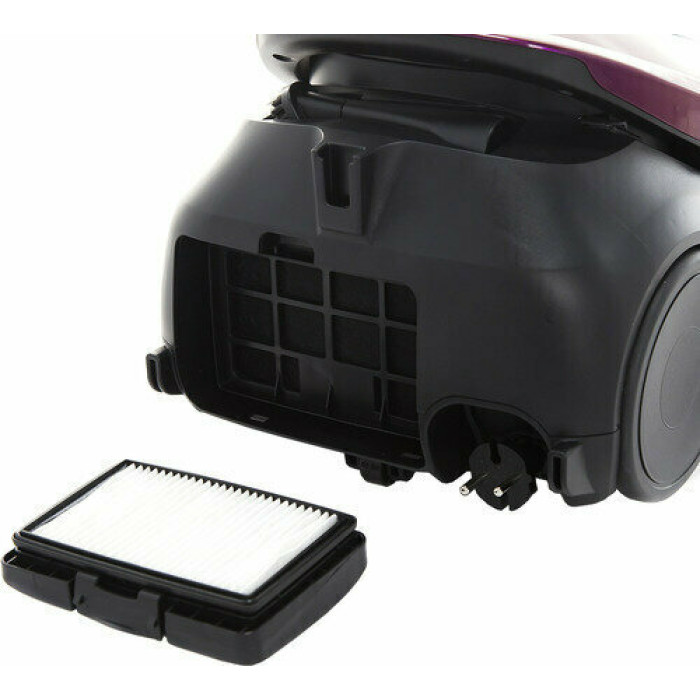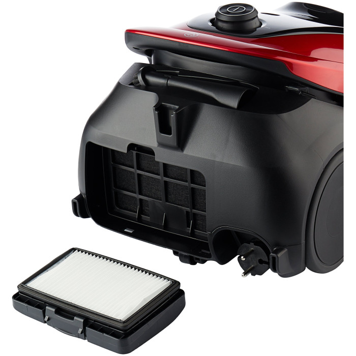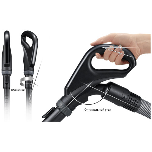 вертикальная парковка, индикатор заполнения пылесборника, место для хранения насадок, ножной переключатель вкл./выкл., регулятор мощности на корпусе, управление мощностью на рукоятке, Автоматическая смотка шнура, Большие колеса