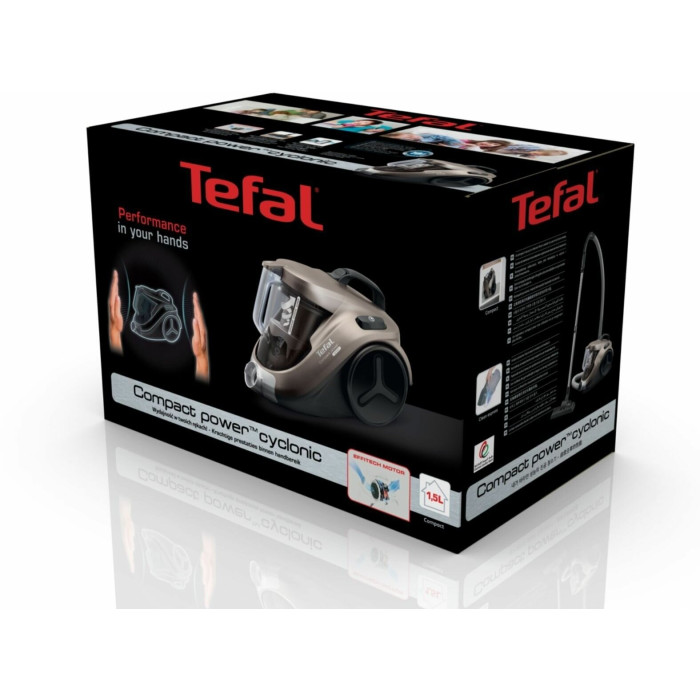 Пылесос для дома Tefal Compact Power Cyclonic TW3786RA. Пылесос Tefal Compact Power Cyclonic идеально подходит как для небольшой квартиры, так и для большого дома, сочетая впечатляющую эффективность и большую вместимость в компактном корпусе. Многоразовый контейнер объемом 1,5 л создан для комфортного использования. Компактный и эргономичный корпус обеспечивает не только комфортное использование, но удобное хранение – пылесос занимает совсем немного места в шкафу. Мощный энергоэффективный мотор EffiTech и высокоэффективная насадка гарантируют тщательный сбор пыли на любой поверхности и безупречную чистоту день за днем, а усовершенствованная циклонная технология обеспечивает максимальную фильтрацию всасываемого воздуха от пыли и грязи. Циклоническая технология пылесоса Tefal Compact Power обеспечивает высокий уровень фильтрации и очищения воздуха от пыли. А эргономичная система быстрой очистки позволит снизить контакт с пылью до минимума.