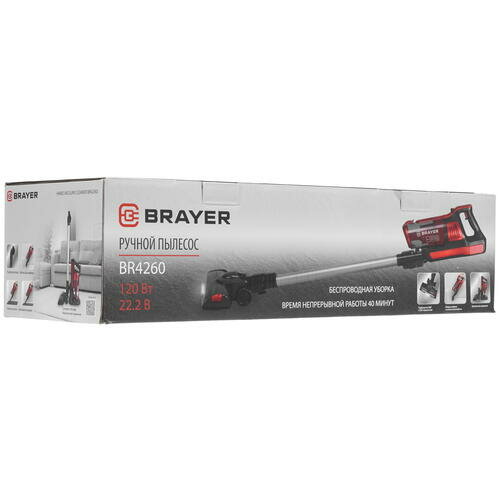 Пылесос BRAYER ручной, 2 в 1 120 Вт, 0,6 л, батарея 22,2 В, турбощетка с LED, база д/хранения