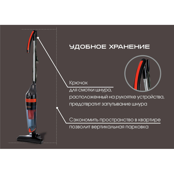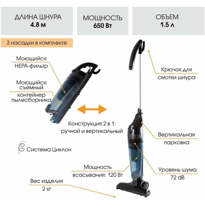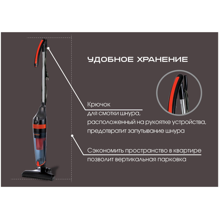 крючок для смотки шнура, моющийся съемный контейнер пылесборника, моющийся HEPA-фильтр
