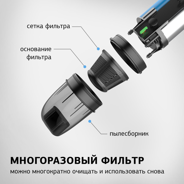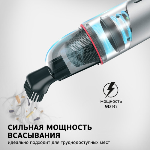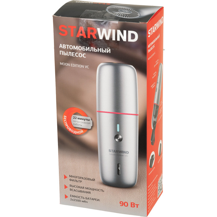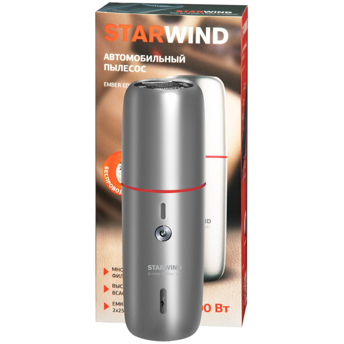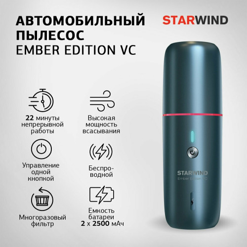 Аккумуляторный пылесос StarWind Ember Edition VC для легкой уборки салона автомобиля привлекает внимание красивым темно-синим цветом, необычной формой, мобильностью. Функциональные возможности пылесоса весьма привлекательны: Встроенный аккумулятор обеспечивает до 22 минут автономной работы, его легко зарядить от автомобильного адаптера. Мотор мощностью 90 Вт создает силу всасывания, достаточную для быстрой уборки салона автомобиля. Фильтр легко моется и чистится. 2 насадки – щетка для чистки сидений, багажника и щелевая насадка для труднодоступных мест. Конструктивно пылесос выполнен в виде небольшого гладкого цилиндра, что придает ему сходство с термокружкой. Компактные размеры и обтекаемая форма гарантируют удобное хранение: StarWind Ember Edition VC убирается в подстаканник, бардачок и другие места в салоне автомобиля. Пылесос поставляется с зарядным проводом USB – microUSB и чехлом для хранения. Основные характеристики Брэнд: STARWIND Модель: Ember Edition VC Мощность: 90 Вт Легко очищаемый пылесборник: есть Чехол для хранения: есть Количество насадок: 2 Насадка-щетка: есть Питание: от собственного аккумулятора Цвет: темно-синий Вес: 443 грамм Габариты товара в упаковке (ед) ДхШхВ: 0.25x0.12x0.07 м Вес товара в упаковке (ед): 0.585 кг Гарантия: 12 мес.