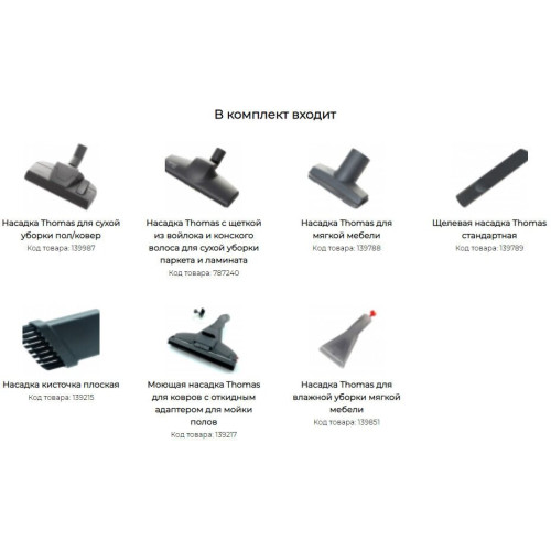 насадка для ламината и паркета, насадка для мягкой мебели, универсальная насадка для влажной уборки, универсальная насадка для сухой уборки, щелевая насадка