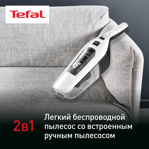 Аккумуляторный вертикальный пылесос Tefal TY6737WH позволяет работать независимо от источника электроэнергии при сохранении всех функций хозяйственного пылесоса. Мощный литий-ионный аккумулятор 18 В. позволяет работать до 45 минут от одного заряда. Объем пластикового контейнера составляет 0,6 л. Производитель Tefal. Автономная работа до 45 мин. Тип пылесоса. Классический для пола и 2 в 1. Тип управления: механическое. Тип уборки: сухая уборка. Складная ручка: есть. Управление на ручке: есть. LED-подсветка: есть. Турборежим: есть. Время зарядки 5 часов. Тип аккумулятора Lithium. Зарядка от сети 220 В: есть. Напряжение аккумулятора 18 В. Подсветка зоны уборки: есть. Количество режимов работы 2. Серия Dual Force. Цвет: белый. Производство: Китай. Индикация: есть. Гарантия 2 года. Страна производителя: Китай. Вес, кг 4.38. Размеры (ШxГxВ), см 31.50 x 19.00 x 60.00.