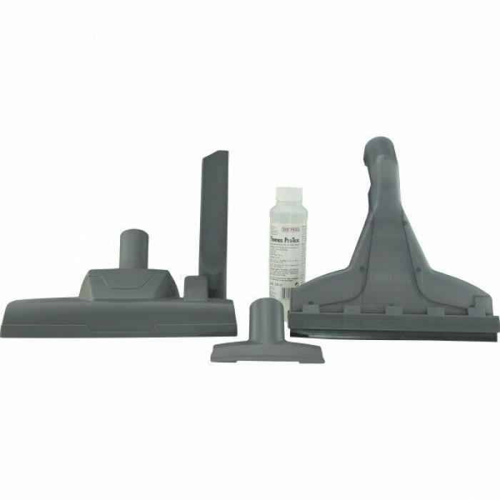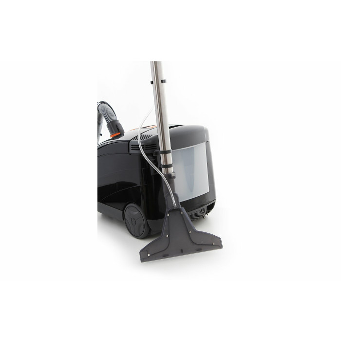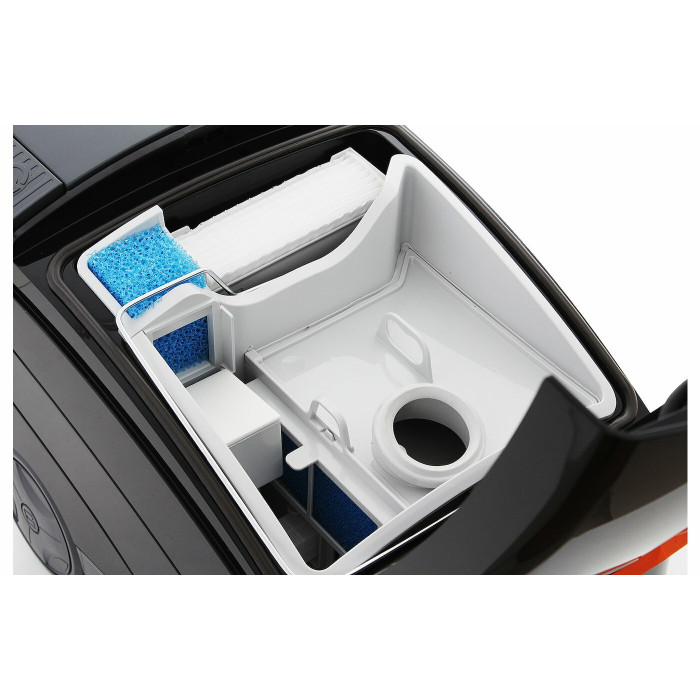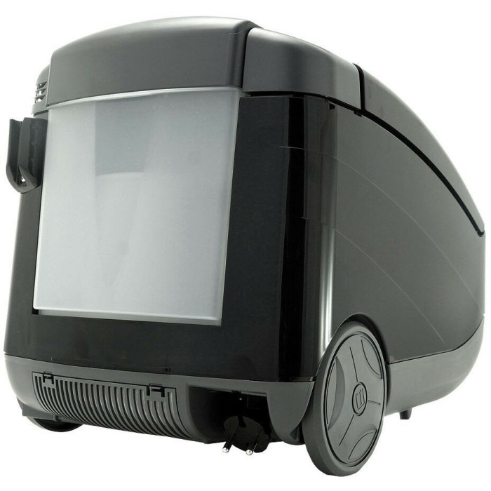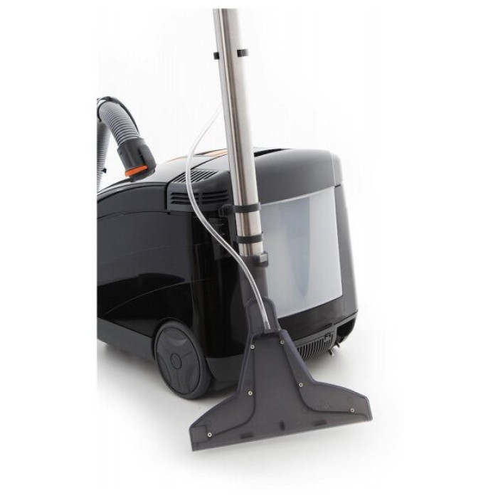 радиус действия 10м; съёмный резервуар для моющего раствора 2.4 л, объём аквафильтра 1 л, бак для грязной воды 4 л; увлажнение воздуха во время уборки