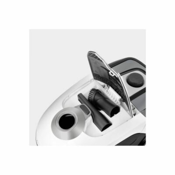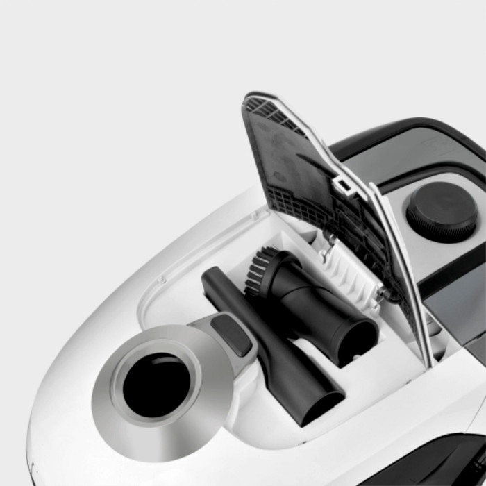 радиус действия 7.5 м; всасывающий шланг 1.5 м, с изогнутой рукояткой; фильтр HEPA 12