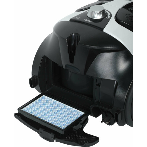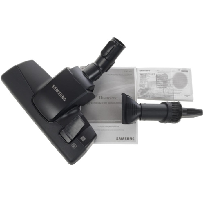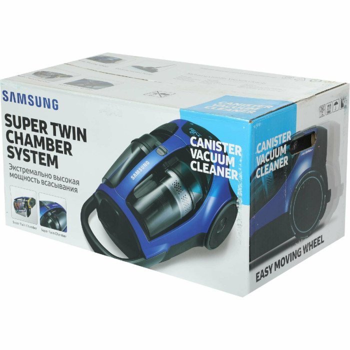 Пылесос Samsung SC8835 с черно-белым пластиковым корпусом позволяет выполнять сухую уборку в жилых помещениях и убирать пыль и мелкий мусор с пола, ковровых покрытий, мебели. Прибор оснащается циклонным фильтром и фильтром тонкой очистки, которые заботятся о чистоте проходящего через пылесос воздуха. При мощности электродвигателя в 2200 Вт пылесос обладает максимальной мощностью всасывания в 430 Вт, что является серьезной цифрой для модели бытового назначения.